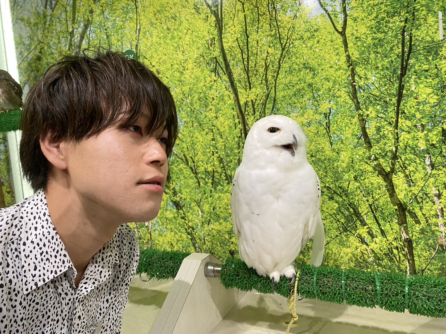 動物も大好きなので先日はフクロウやモモンガと触れ合える動物カフェに行ったんですよ!写真に写っている白いフクロウが可愛くてとても癒されました😊個人的には最近白い色の可愛い動物にハマっていて、シマエナガやオコジョ、シロイルカを見に行って癒されたいなって思っています!